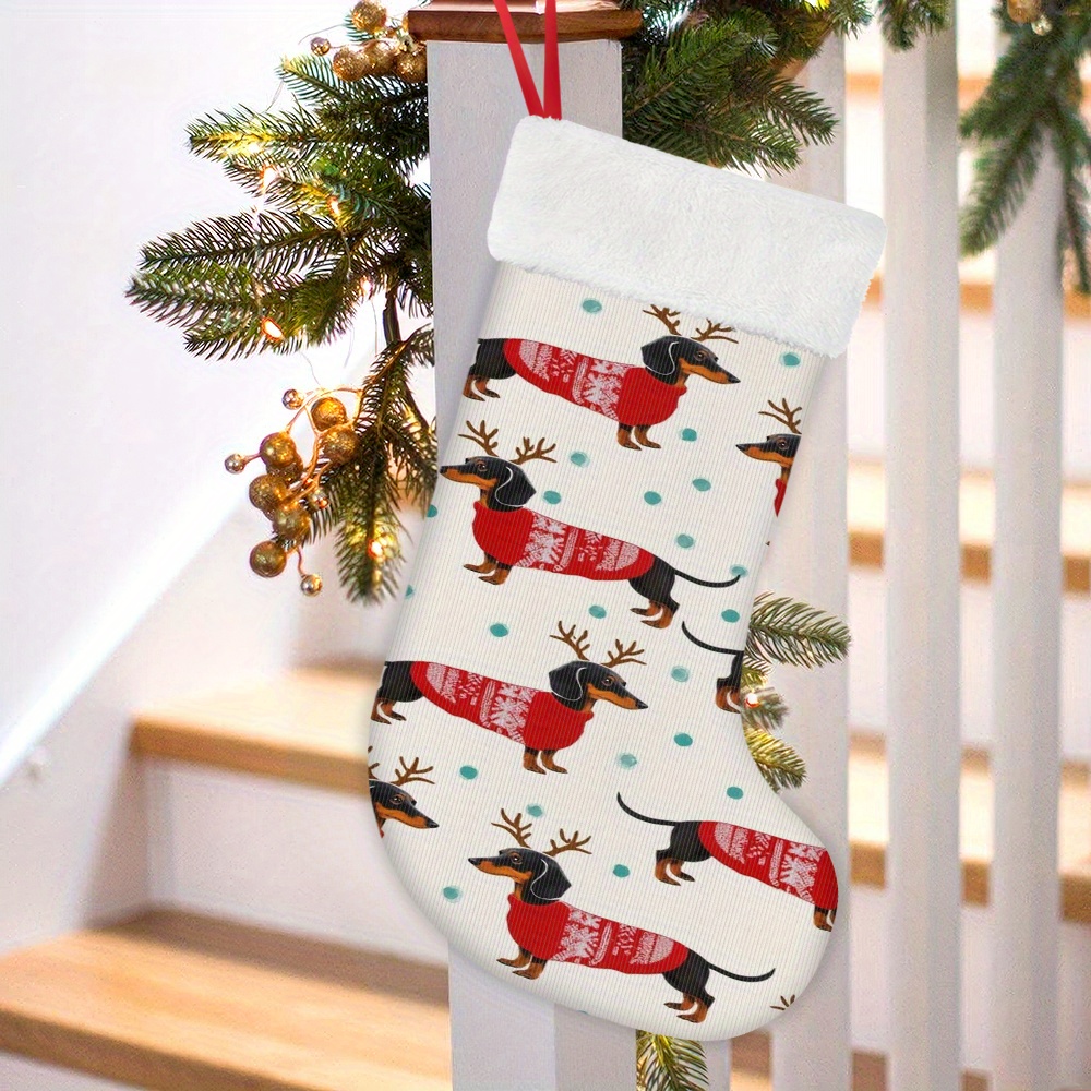 1 Christmas Stocking, Dachshund Printed Sock for Xmas Decorations - High-Quality Digital Design Suitable Indoors/Kitchen or Party Use, Christmas Socks for Hanging, Christmas Stockings, Christmas Stocking Decoration, Pet Chris