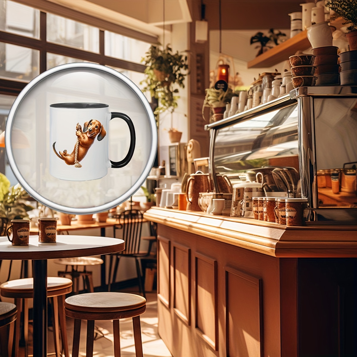 Ceramic Insulated Coffee Mug 11oz | Playful Dachshund Double-Sided Print | Microwave & Dishwasher Safe Mug for Home, Office, Party | Unique Gift for Men, Husband, Dad | 1 Piece
